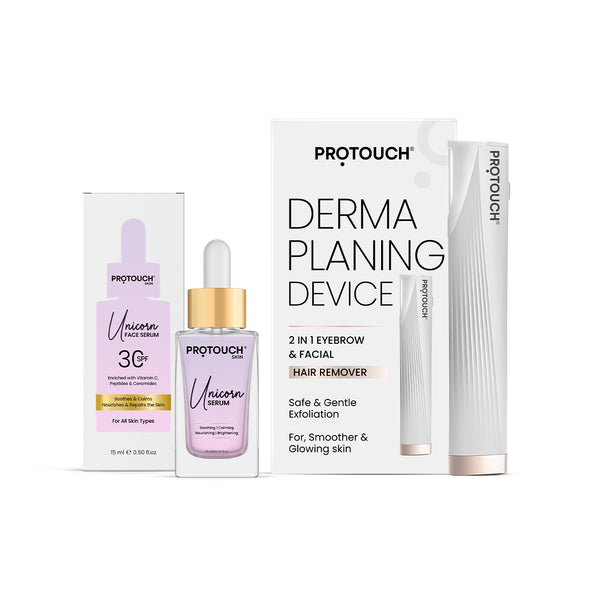 Protouch Unicorn face serum is enriched with multi-peptides, ceramides, and vitamins. It provides deep moisturization after the dermaplaning session to strengthen & repair the skin barrier which makes an ideal aftercare.