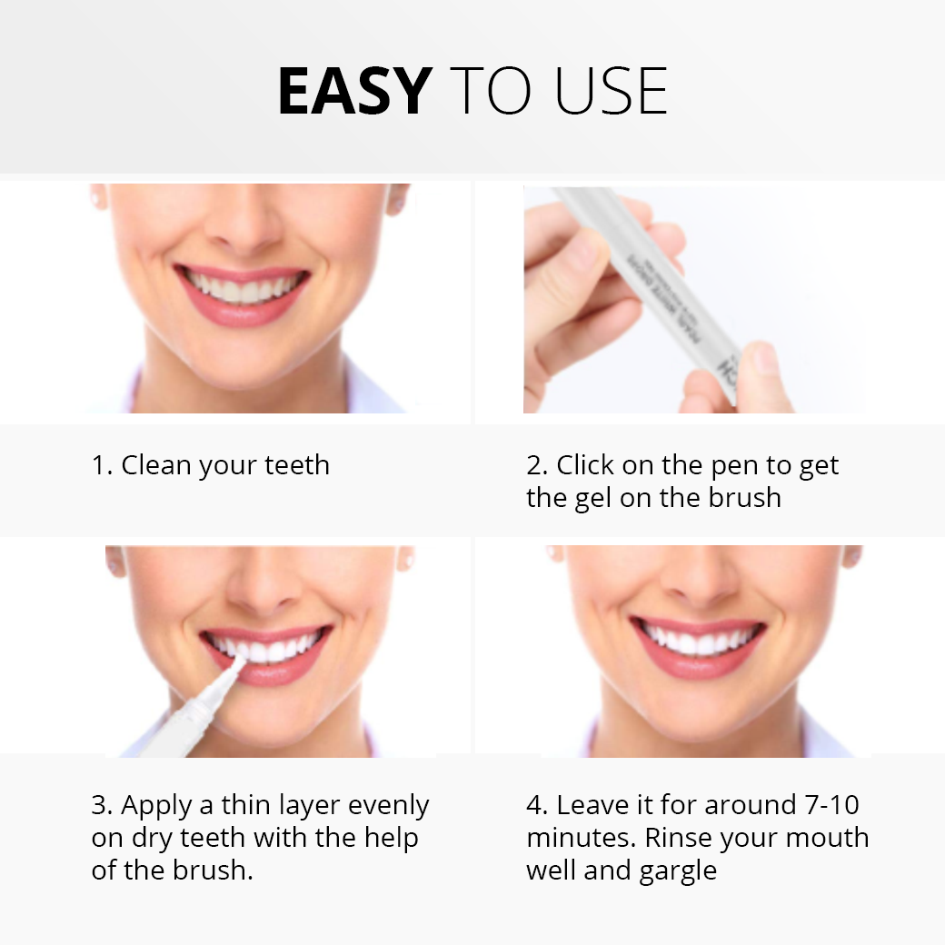 You will start seeing effects in the first 2 weeks and visible results in 4-6 weeks. The whitening pen can be used daily and up to 3 times a week with an LED toothbrush. While you will achieve your desired results within 4-6 weeks, oral consumption will keep staining your teeth so it's important to make it a regular habit of including the drops in your daily oral routine for lasting results.